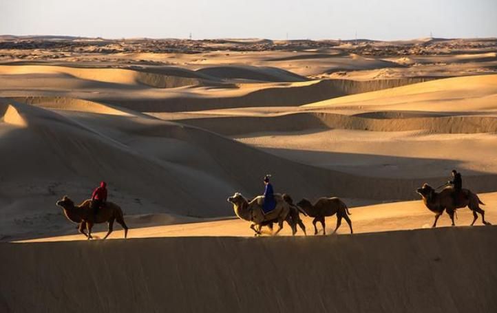 大漠无垠载旅人,驼铃犹在耳边闻。
