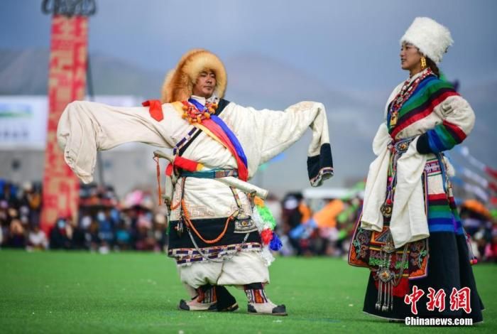 资料图为西藏自治区拉萨市当雄县赛马节上的藏族传统服饰表演。 中新社记者 贡嘎来松 摄