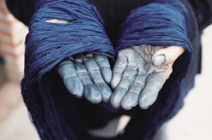 蓝色的手是以蓝染为生的人重要的标志之一。