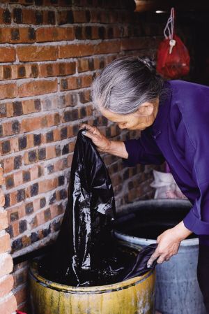 黄奶奶在染布。
