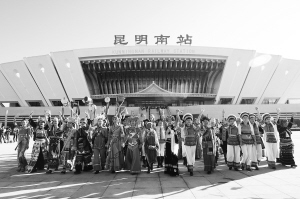 云南探索“高铁沿线创建联盟”等创新做法,全面深入持久开展民族团结进步创建工作。图为各族群众在庆祝高铁开通仪式上载歌载舞。云南省民宗委供图