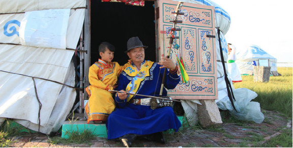 乌力格尔的表演形式是一人一琴,坐着说唱,没有舞动表演。