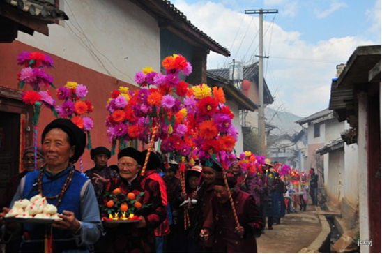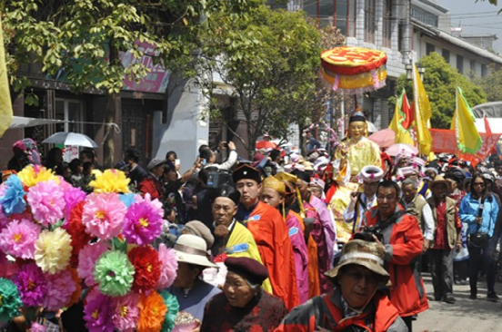 农历二月初六,迎太子入城。这一天在佛教徒的带领下,人们焚香沐浴,衣冠整齐,虔诚地将“太子”(用布扎油漆制成的太子行像)请到行宫或本主庙里。这一年的新郎为太子抬轿,希望能得到太子的保佑而使新婚的妻子孕生男儿。