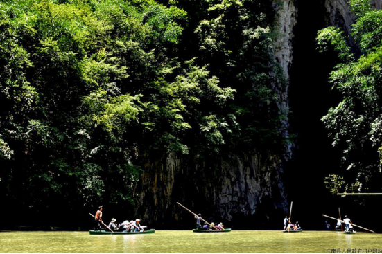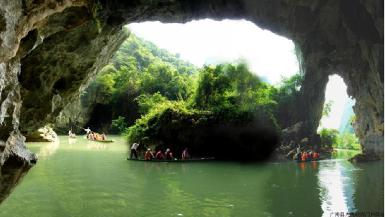 坝美,为壮语译汉语为:坝—冲口,美—树 ,因居住的冲口树木多而得名。坝美村位于珠江流域西江水系驮娘江上游的阿科河畔。属喀斯特地貌,区域内山峰奇特,河谷幽美,阡陌纵横,河流山泉蜿蜒奔流,溶洞层叠散布在山体峰内,冬无严寒,夏不酷暑,气候宜人。因四面环山,不通公路,进出寨子主要靠村前村后两个天然的石灰溶岩水洞,村民们要摸着岩壁趟水、撑竹筏、划独木舟、坐小船,经过950米长的幽暗的“出水洞”和680米长的“汤拿洞”才能进出。由于地处偏僻,交通不便,基本不与外界交往,多年来坝美村长时期与外世隔绝。坝美村水源丰富,气候温和,自然生态环境未被污染,负氧离子质数高出城市数倍,游人在此休憩,心旷神怡,是一个温湿润,四季宜人的旅游胜地。就生态环境和历史渊源来说,《桃花源记》问世1500多年,只闻其名,不见其实。相传除唐代确认湖南省桃源县的桃源洞为其原型外,目前全国就有冠名“世外桃源”的地名16个之多。而今天的坝美,不仅十分相似,而且还神似东晋文学家陶渊明笔下所描写的“林尽水源,便得一山。山有小口,仿佛若有光;便舍船从口入……土地平旷,屋舍俨然,有良田美池桑竹之属;阡陌交通,鸡犬相闻……”的世外桃源。而且在当地村民中有许多历史传说:北宋皇祐四年(公元1052年),壮族起义领袖侬智高在邕州(南宁)昆仑关被狄青打败后,退入以其继父侬夏卿为首领的特磨道(广南)后,至和二年(1055年),宋朝廷又派杨文广领兵进剿,侬智高在突出重围转至阿科(今广南县坝美镇治所)与宋军周旋,终因寡不敌众而离开阿科转战于丘北、开远、蒙自、元江等地,后到大理不知所终。