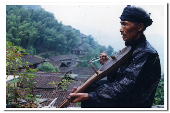 果哈是苗族唯一的古老的民间弓弦乐器,因其形似瓢,故苗语称之为果哈(意即瓢琴),是唱古歌时不可缺少的伴奏乐器,一般以歌师自拉自唱为主。制作工艺比较粗糙,先选一段长60厘米、直径为15厘米左右的鸭脚木或泡桐木制成琴身,在其二分之一的一端剜成瓢状,封住薄板作共鸣箱。另一端修成琴柄,在琴柄顶端钻孔安琴钮,用棕绳、牛筋作琴弦,用竹片和综丝制成弓。琴置两弦,演奏时以人的唾液代替松香,演奏者时而将弓毛放入口中,让弓毛增加温度,增强与琴弦的磨擦,使之发音。果哈音量微弱,发音低沉,但音色独特,与苗歌语调相当协调,较适合表现安静、深沉情绪,故常为苗族叙事古歌伴奏。