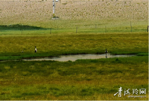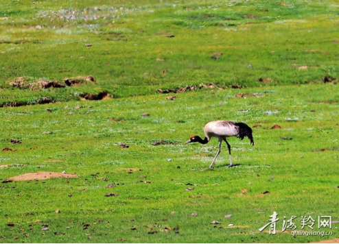8月9日,参加“奋进新征程 建功新时代 非凡十年”主题采访的记者们来到祁连县央隆乡央隆湿地公园,看到一对黑颈鹤夫妻正带着一只今年孵化的黑颈鹤幼鸟在湿地内悠闲散步和捕食。黑颈鹤被誉为“鸟类中的大熊猫”,是世界上惟一生长、繁衍在青藏高原的鹤类。据监测数据显示,祁连山国家公园青海片区及周边地区目前分布有黑颈鹤80只,可见祁连山国家公园是黑颈鹤重要栖息地之一。