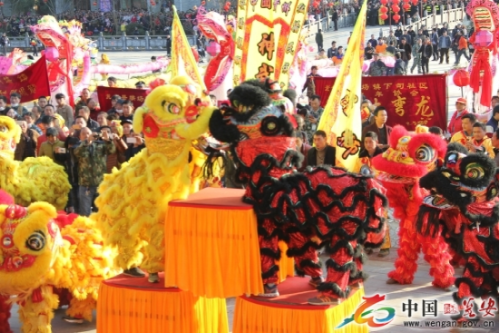 在贵州瓮安的草塘,春节期间不只有舞龙表演,还有舞狮。舞狮代表欢乐和人们心中的祝福,是美好生活的象征