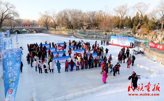 1月10日,第四届北京市冰蹴球挑战赛暨京津冀冰蹴球邀请赛在北京市龙潭公园户外冰场举行。