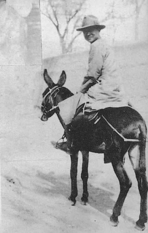 晏阳初在定县翟城村,毛驴是他固定的交通工具。资料图片