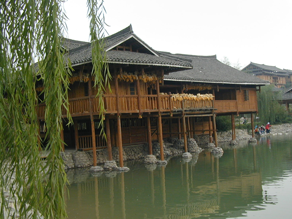 壮族多聚居在崎岖的山区和群峰之间的丘陵地带,壮族人民因地制宜创造了独居特色的干栏式建筑。壮语称屋为“栏”或“干栏”。干栏建筑使用木(或竹)柱做成离地面相当高的底架,再在底架上建造住宅。楼上住人,楼下豢养牲畜和贮存物件。这种住宅适于潮湿多雨,地势不平的南方山区。