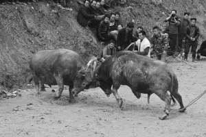 从江县激利的斗牛比赛是当地苗侗群众最喜欢的娱乐活动。