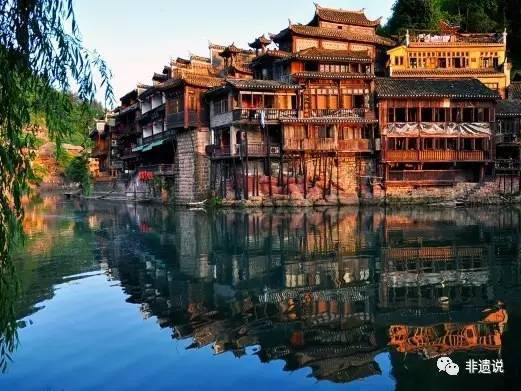 土家族人传统的栖息场所——吊脚楼,底层吊脚,高层居住,一半与陆地相接,另一半与水面相依。