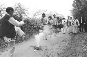 迎亲队伍出村口时要“过火堆”,求吉利