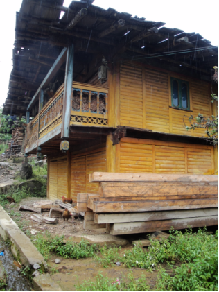 云南迪庆维西多拉格傈僳族村传统民居,竹木为主,砖石为基