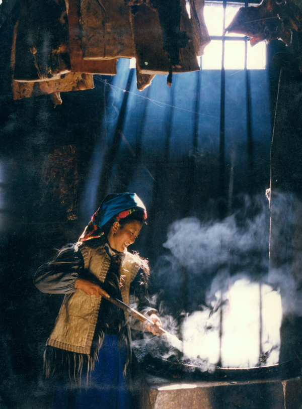 正在烹饪的羌族妇女(刘军摄)
