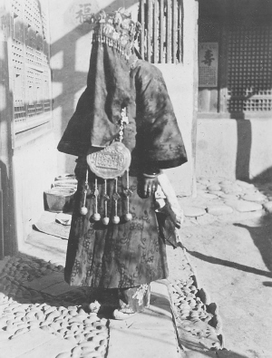 照片中的人物,是青海循化街子工附近一位即将出嫁的新娘。照片拍摄时间是1932年2月,地点是霍顿居住的院落。