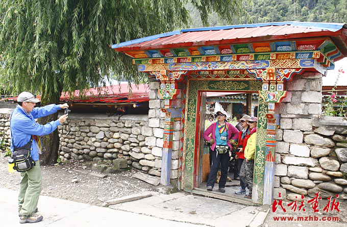 在珞巴族家门前留影纪念的游客络绎不绝(列来拉杜 摄影)