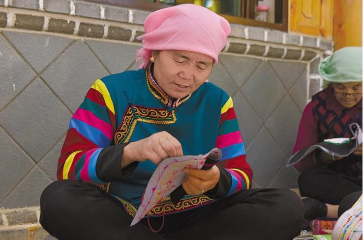 盘绣园里,阿姑们正在绣新一批的订单。