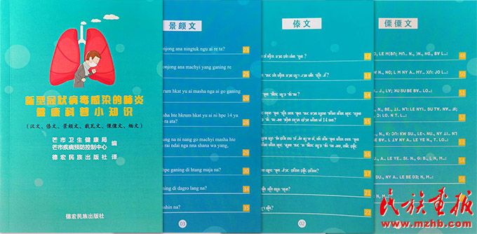 德宏民族出版社出版的《新型冠状病毒感染的肺炎健康科普小知识》(汉傣、汉景、汉傈等对照)5000册将免费发放至全州各乡镇和边境一线窗口单位。
