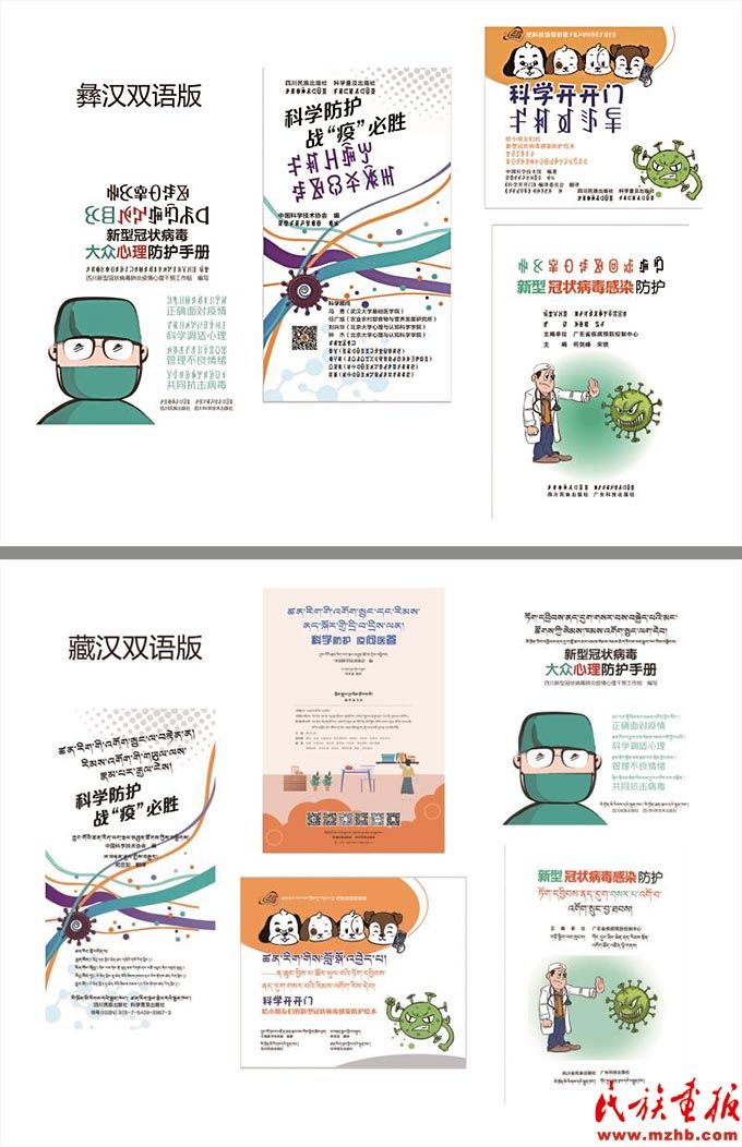 四川民族出版社出版的《新型冠状病毒感染防护》(藏汉双语、彝汉双语)纸质图书。