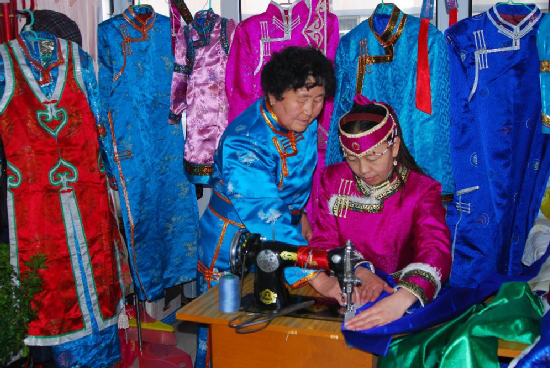 察哈尔服饰是蒙古族服饰和满族服饰的集大成者。基本特点是便洁、亮丽、华贵,服饰的主角是长袍。察哈尔长袍制作精细,边饰工艺要求严格,不求华丽而求优雅。长袍的外罩是坎肩,坎肩分长短两种。长坎肩要长到过膝,用料要求质地优良,边饰华丽,短坎肩不能遮臀,用料以黑、灰、兰色锻子为主,衣扣最讲究美观,边饰用特制的金线缝制的连续图案。