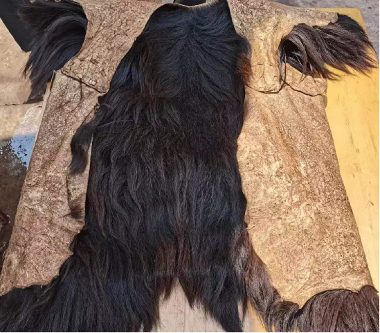 大叔介绍羊皮衣制作并不复杂,只需要把山羊皮清洗干净,平整铺开在墙上自然风干,十多天后取下揉搓软后,用蓑衣针缝合便可。为了让羊皮结实耐用,缝合羊皮的线也是用羊皮制作而成。