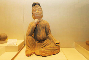 阿斯塔那墓出土的彩绘泥塑文吏俑。