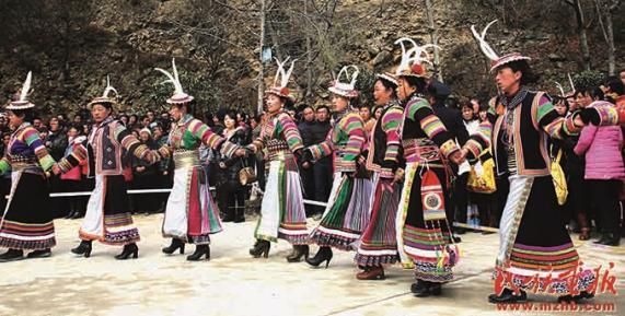 云南省楚雄彝族自治州永仁县彝族赛装节上的“一片红”。