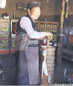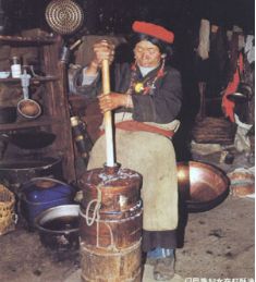 门巴族妇女在打酥油