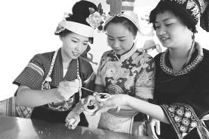 贵州凯里下司古镇的苗族姑娘在捏月亮粑。 吴吉斌摄