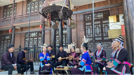 芦笙踩堂、鼓楼欢醉、笛子歌、侗族大歌、团圆多耶舞、非遗体验、年货展销——平寨演艺中心