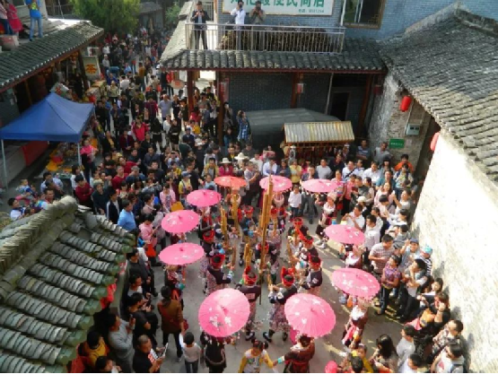 过年期间,各家各户姓氏轮流过节,亲朋好友都会集中前往,最后到鼓楼坪唱歌跳舞庆祝侗年。——程阳八寨景区