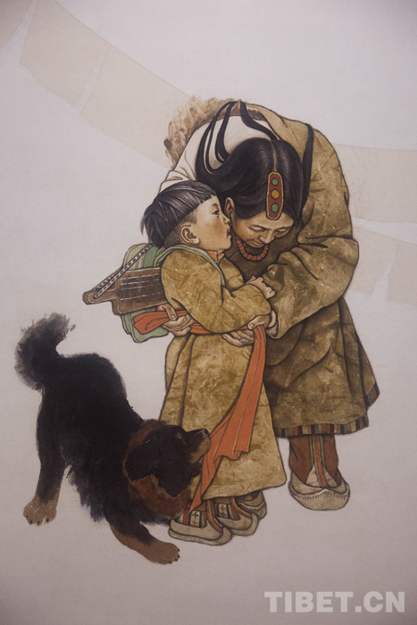 鉴赏展现场,不少前来参观的画家都是韩书力的学生或在一定时期曾受其教导。“1973年,我在西藏自治区展览馆见到了韩书力老师,第一次见面我就拜了师。我们一起下乡,我就给他当导游和翻译。30几年来,我一直在学习韩老师的绘画技法,到现在还是他的学生。韩老师创作《毛主席派人来》时,我就跟在旁边学习。学到了一些创作独幅作品的技巧和手法,让我受用至今。”西藏青年画家计美赤列说。