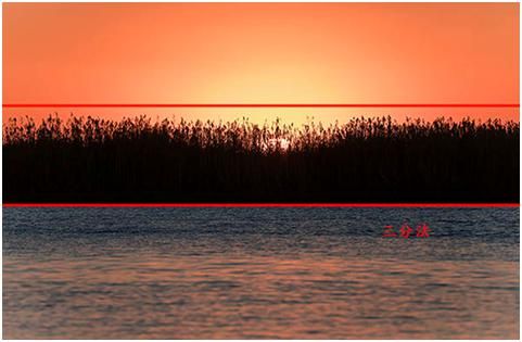 有的人可能就会问,地平线或者海平面的这个线,到底是放在哪条线上比较合适呢?主要原则可以称为“顶天立地”,如果地面上的内容比较精彩的,就把这个地平线放得高一些,就是放到上面的1/3,也就是从上面数的第一条线上。如果天空的内容比较精彩的,比如说日出日落、彩霞满天,地平线就放得低一些,放在最下面这条线上。