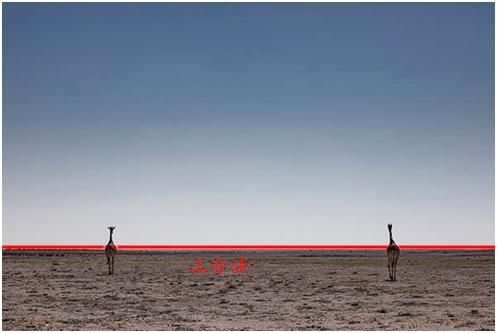 三分法构图是最常用的一种构图形式,它是将画面上中下分成了1/3,可以理解成上、中、下,或者近、中、远景的概念。
