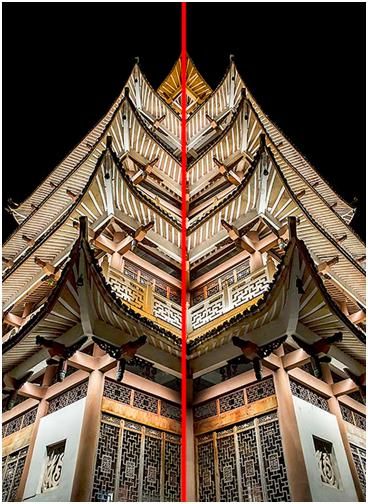 对称法构图,就是中轴对称,分为纵轴对称和横轴对称,把整个画面进行平分,带来视觉的平衡,这种对称法构图主要是用在一些很对称的题材上,比如建筑类题材上用的要多一些。