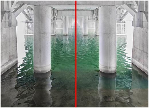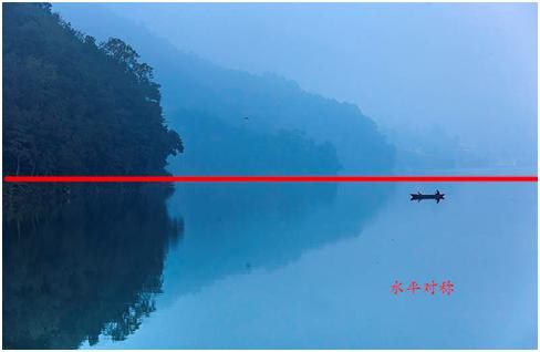 除了纵向对称,还有水平对称。水平对称,一般适合拍摄上下对称的题材,比如说水面的倒影。在太阳还没出来的时候,已经有亮光的时候,天空呈现出一种蓝调,水面又没有高光,一切都是那么的宁静,因为蓝色是让人很安静的一种颜色,很舒服。如果你看到了这时候水面的景色,倒影还不错的话,不妨采用这种方式。