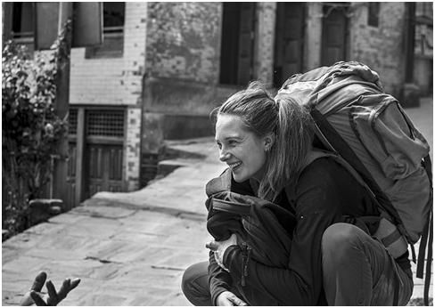 这张图是在尼泊尔一个街道上用长焦拍的,拍的是一个西方旅行者,面带笑容,表情愉悦,我有意识的只拍了对面的一只手,她是在问路?聊天?还是遇到了乞丐?都没有做交代。