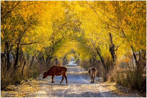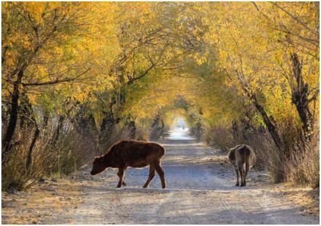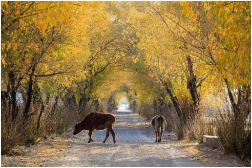 第二点,拍摄时机的把握上还是差了一点,应该在牛走到比较亮的地方,才去拍摄,这样主体会亮一些,在晨光的照耀下,金黄色的毛色也会更醒目。