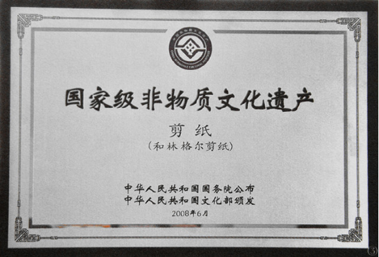 2008年,和林格尔剪纸被国务院公布为国家级非物质文化遗产代表名录