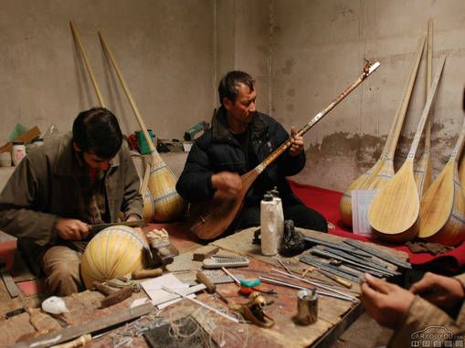 “冬不拉”是哈萨克族的拨弦乐器,现在使用的冬不拉有乐队使用的高音、中音、和低音冬不拉,为凸底,琴腹梨形,多为红松木,铜、骨制品,采用铜丝弦,自成一组,可演奏丰富多彩的音乐作品,也可用来伴奏歌舞。高、中音冬不拉也可以独奏,也可弹唱。另有民间冬不拉为平底桦木制,经缠丝弦为音品,琴腹为铲形,张两根弦,用右手弹奏,为哈萨克牧民家中必备的乐器,自弹自唱或独自演奏。“马和冬不拉是哈萨克人民的翅膀”。哪里有帐篷,哪里就有冬不拉的琴声。