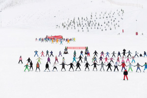 人们在阿勒泰市将军山滑雪场参加庆祝活动。