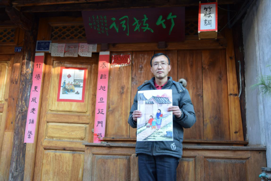 张旭东的童年,是在祖父母的耳提面命中度过的,他跟随老人习书绘画,学礼明俗。到了弱冠之年,他逐一拜访古镇中尚在的民国时期出生的老辈文人,向他们请教剑川白族传统民俗,并做了系统梳理,这也为他后来绘制年画、撰写春联打下扎实的理论基础。