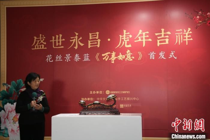 程淑美与花丝景泰蓝新作《万事如意》在首发现场 李妮 摄
