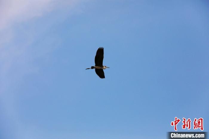 鸟儿在南宫湖湿地公园飞翔。 田威 摄