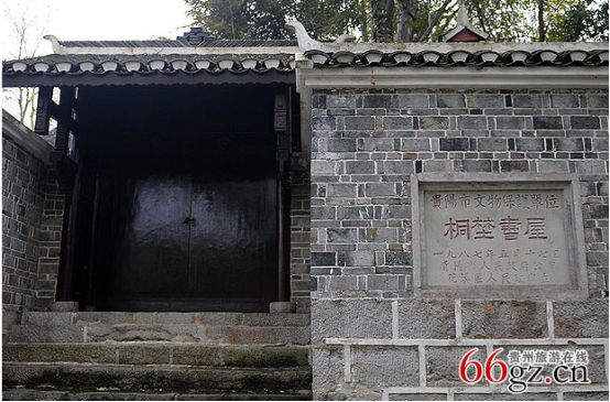 书屋分为两层。一楼陈列着当年周起渭用过的物、读过的书以及他的部分著作。斯人已去,留下的只是几卷发黄的诗扉,静静地呆在玻璃橱窗里,并不在乎它是否能“动天地、泣鬼神!”只是从泛黄的光泽中让后人知道这是一缕不断的文脉。二楼陈列着当代贵州书画名家为桐野书屋创作的作品,铁钩银划中,萦绕的是对先贤的顶礼膜拜;丹青水墨中,孕育着文脉不断的传承。书屋的后面是一林参天的古树,他们能作证:当年的周起渭——一个穷乡僻壤的农家子弟怎样寒窗苦读,最终名满京师的。
