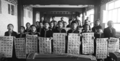 新疆阿克苏地区乌什县依麻木镇国家通用语言学校的学生们在展示硬笔书法作品。乌什县委宣传部供图