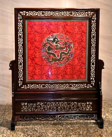 云锦《真金孔雀羽大团龙》地屏