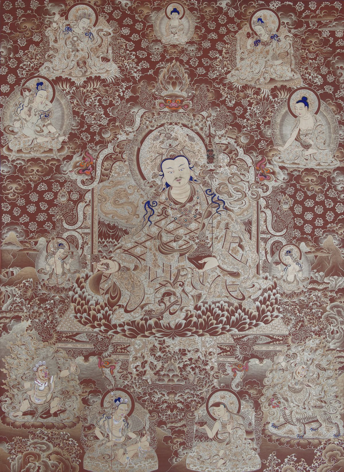 莲花生大师,印度佛教史上最伟大的大成就者之一。公元八世纪,应藏王赤松德赞迎请入藏弘法,成功创立了西藏第一座佛、法、僧三宝齐全的佛教寺院——桑耶寺。他教导藏族弟子学习译经,从印度迎请无垢友等大德入藏,将重要显密经论译成藏文,创建显密经院及密宗道场,开创了在家出家的两种圣者应供轨范,如是等等,奠定了西藏佛教的基础。[藏传佛教尊称他为咕如仁波切(意为大宝上师)、邬金仁波切(乌仗那宝)。通称贝玛迥乃(莲花生)。据多罗那他于1610年所著《莲花生传》所载,约于摩揭陀国天护王时出生于邬金国王族。圣诞日:藏历六月初十。