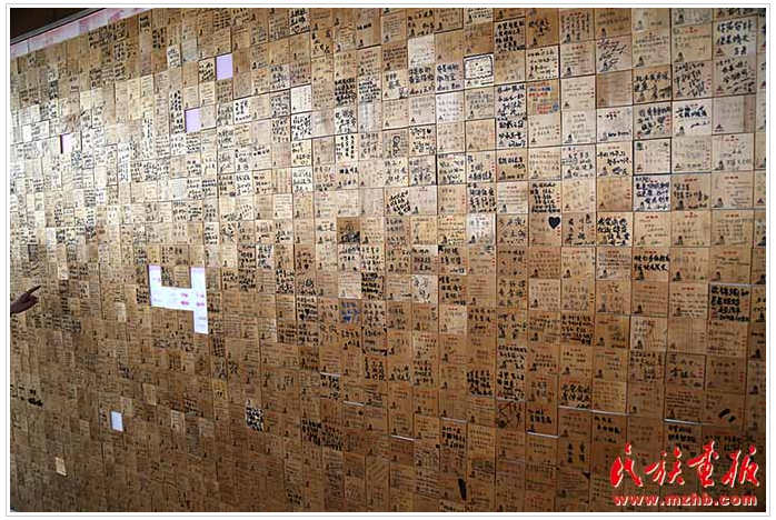 防川龙虎楼上游客的留言牌贴满了一面墙